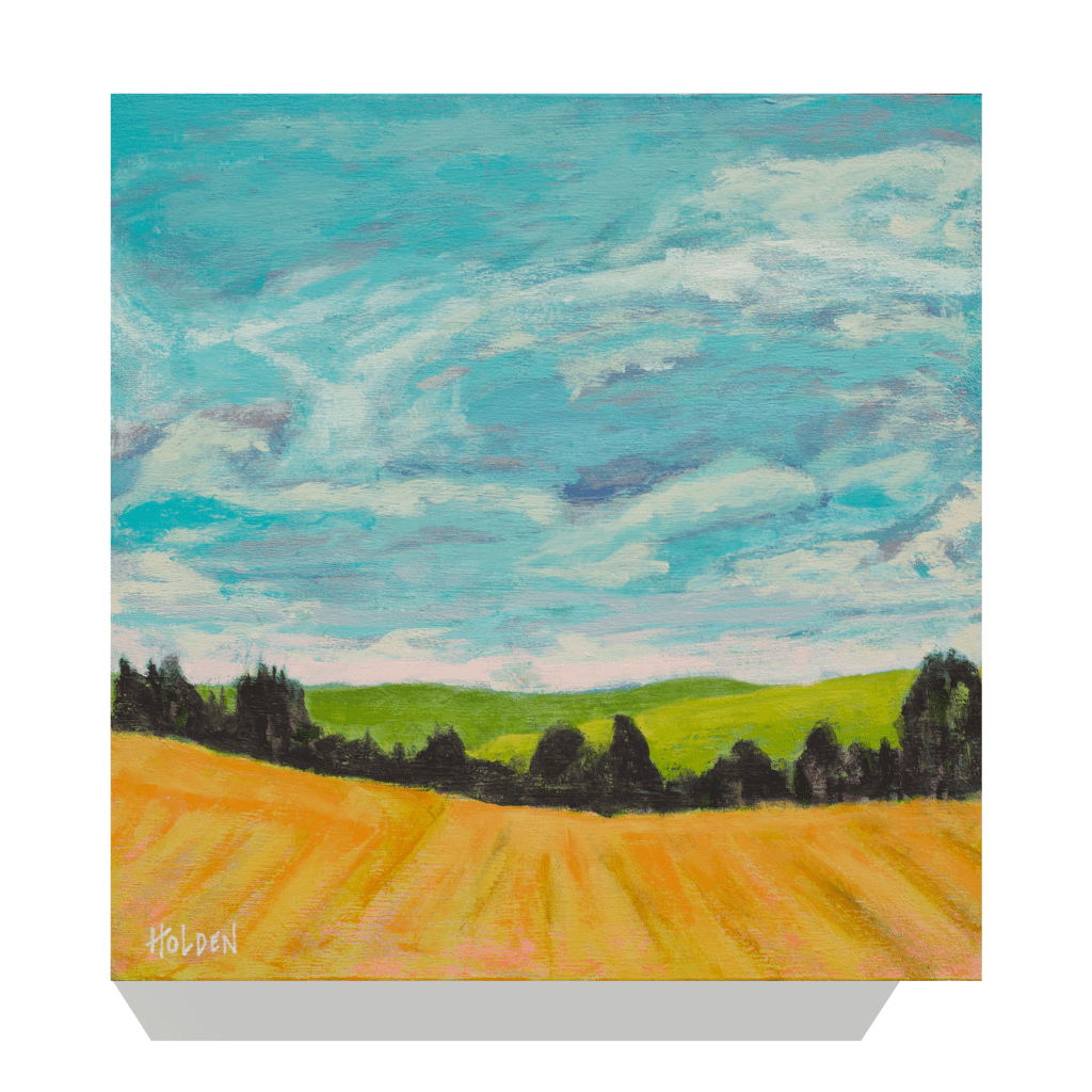 The painting ‘Warkworth In Autumn’ was held within a memory from Fall 2024. It began like all musings with quiet and pause, I gave it my full attention. I was struck by the ever changing variations of light and colour within the vast openness of the field. Gazing upwards I became aware of the slowly moving escalator of clouds and blue sky against the openness of the field, I gave my attention to the sky for a long time to discover subtle changes, it is with this kind of attention that I discover the most intriguing and beautiful landscapes. It is from within the solitude of these simple quiet musings that a field painting like ‘Warkworth In Autumn’ is brought into the world.