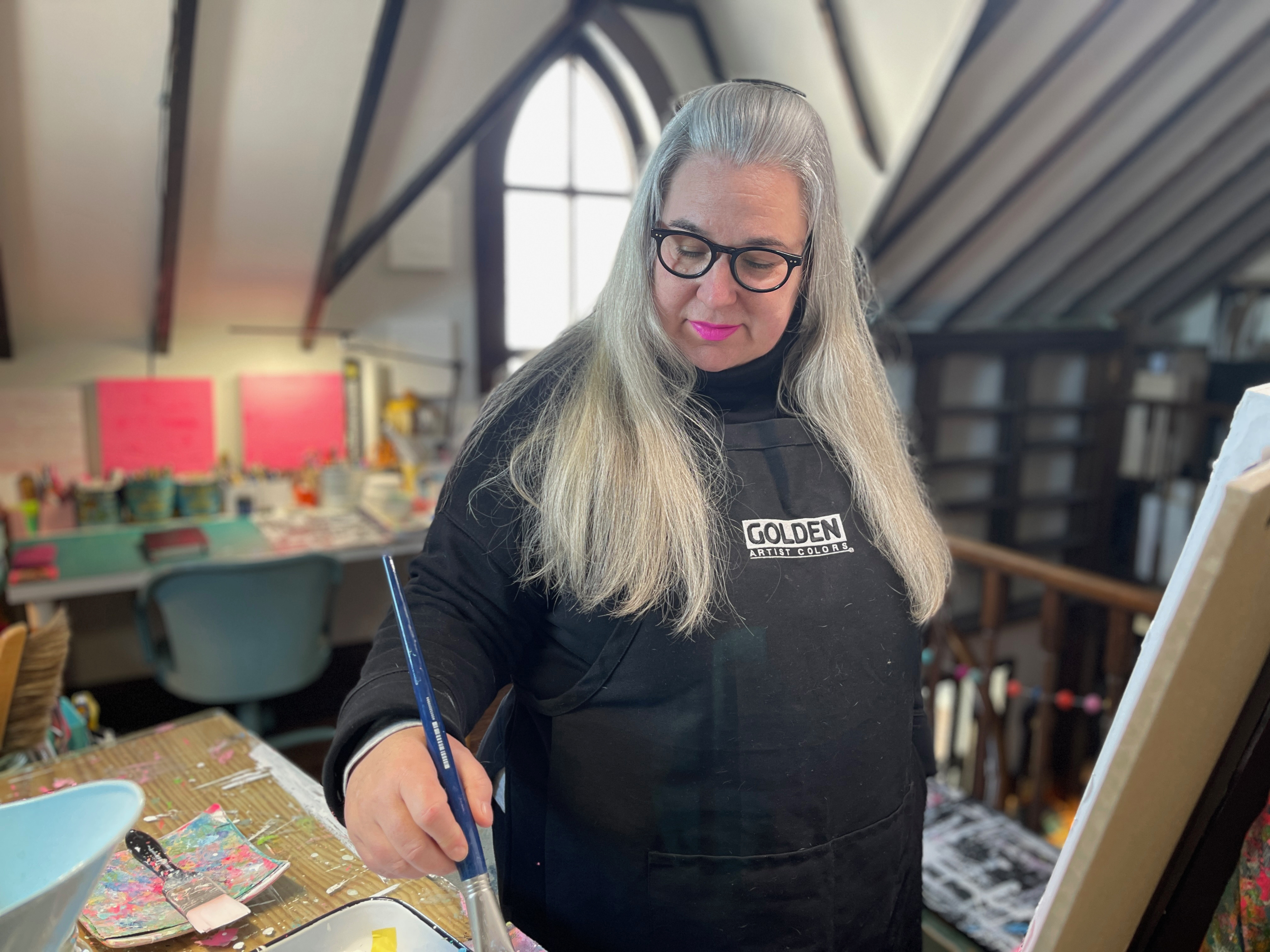 My studio is comfortably nestled into the loft of a victorian gothic farmhouse overlooking my surroundings. I live my days immersed in the quiet rhythms of nature and the beauty found within moments of presence. My husband also an artist Brandon Steen and our English bull terriers Dolores and Paddy live just outside the quaint little village of Warkworth.
